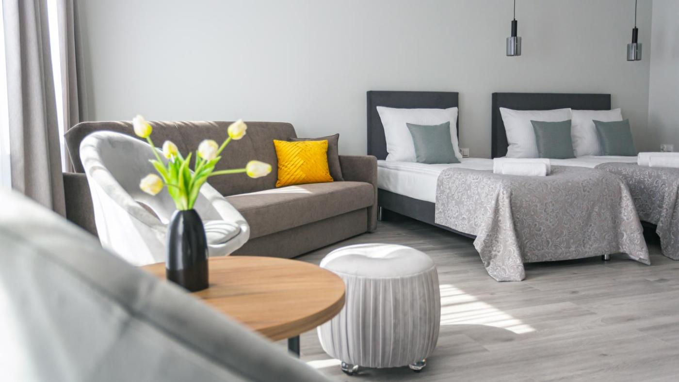Apartament. Boasting a private entrance, this spacious apartment also comes with 2 separate bedrooms and 1 bathroom with a walk-in shower and a hairdryer. Meals can be prepared in the kitchen, which features a stovetop, a refrigerator, a dishwasher and kitchenware. The air-conditioned apartment features a flat-screen TV with cable channels, a tea and coffee maker, a wardrobe and a sofa. The unit has 3 beds. Apartament - 5 osobowy. Powierzchnia pokoju ok.: 68 mkw.