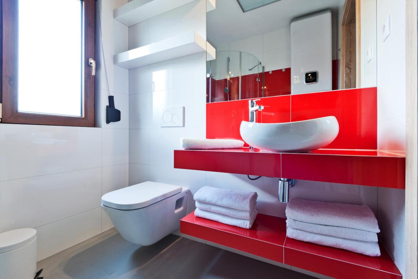 Domek z 3 sypialniami. The pool with a view and fireplace are the special features of this chalet. Boasting a private entrance, this air-conditioned chalet features 1 living room, 3 separate bedrooms and 1 bathroom with a shower and a hairdryer. Guests will find a stovetop, a refrigerator, a dishwasher and kitchenware in the kitchen. The chalet also comes with a barbecue. Featuring a terrace with lake views, this chalet also features a washing machine and a flat-screen TV. The unit has 5 beds. Domek - 8 osobowy. Powierzchnia pokoju ok.: 70 mkw. ;