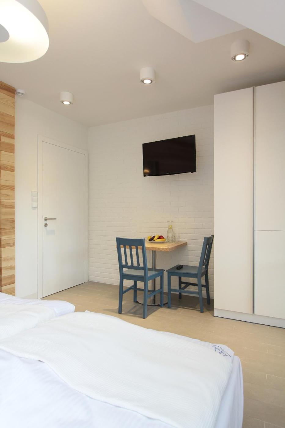 Pokój Dwuosobowy z 1 lub 2 łóżkami i balkonem. Jest to dźwiękoszczelny pokój dwuosobowy z 1 lub 2 łóżkami, balkonem oraz telewizorem z dostępem do kanałów kablowych. Do dyspozycji Gości jest parawan, leżaki, wieszak na ubrania i odkurzacz. Pokój Dwuosobowy z 1 lub 2 łóżkami - 2 osobowy. Powierzchnia pokoju ok.: 18 mkw. ;
