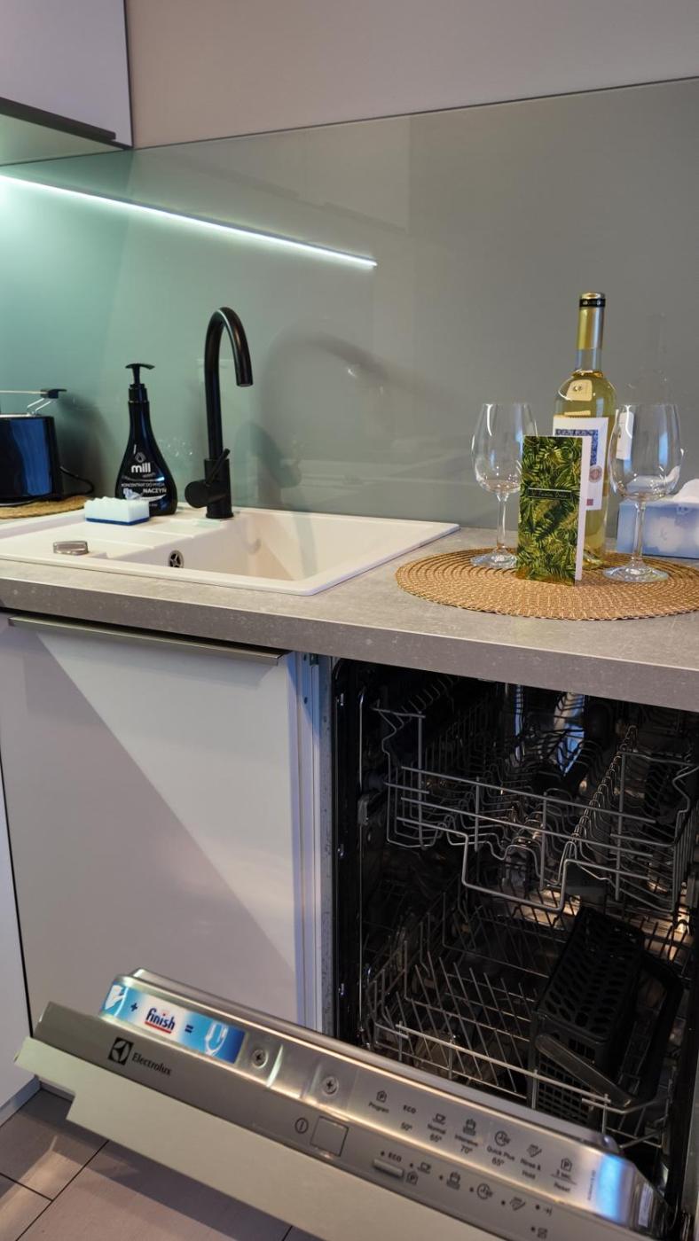 Studio. Featuring free toiletries, this studio includes a private bathroom with a shower, a hairdryer and slippers. Guests can make meals in the kitchen that features a stovetop, a refrigerator, a dishwasher and kitchenware. The studio features a flat-screen TV with satellite channels, a tea and coffee maker, a wardrobe, parquet floors as well as ancourtyard view. The unit has 1 bed. Studio - 2 osobowy. Powierzchnia pokoju ok.: 20 mkw. ;